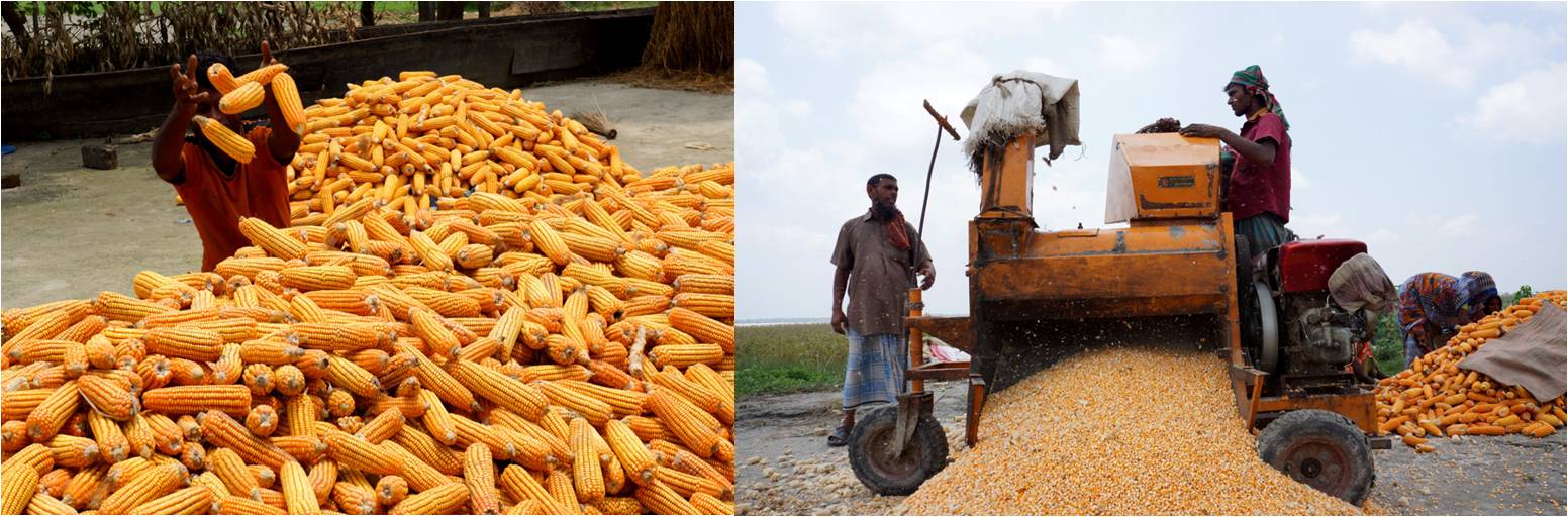 চরে ভূট্টা উৎপাদন, মাড়াই ও শুকানো ব্যবস্থাপনা