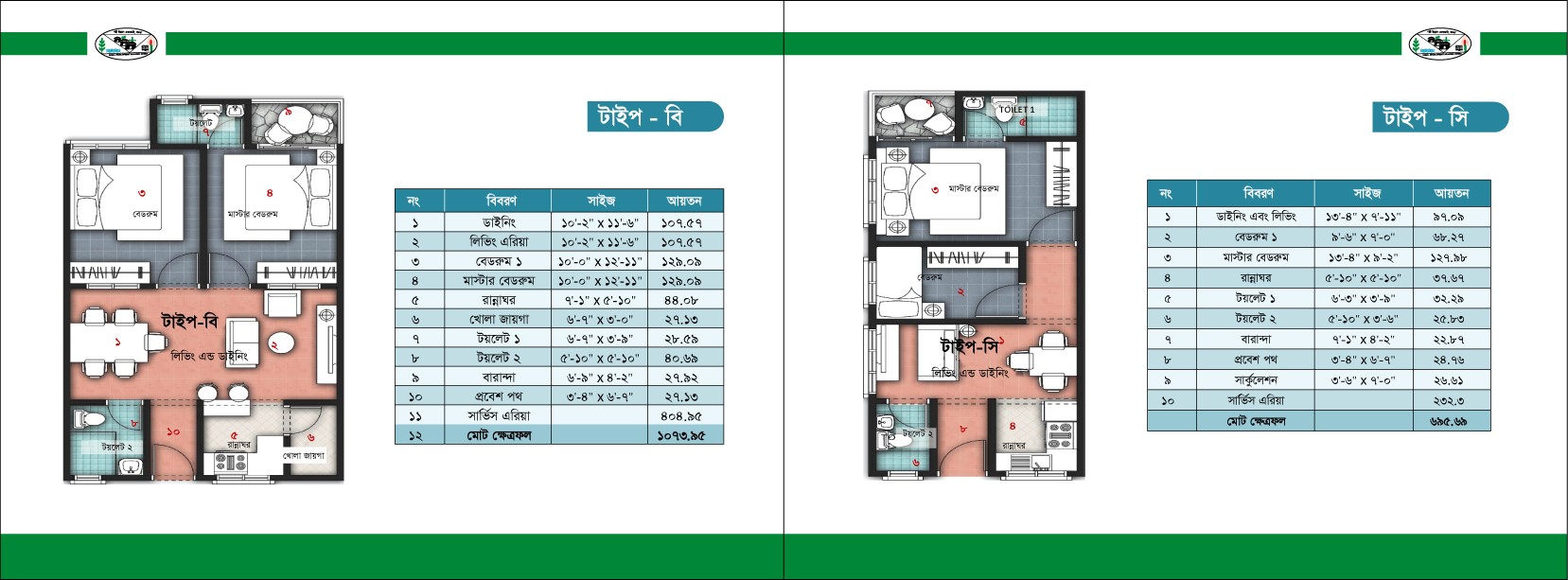 পল্লী জনপদের বিভিন্ন ধরনের ফ্ল্যাটের বিবরণঃ