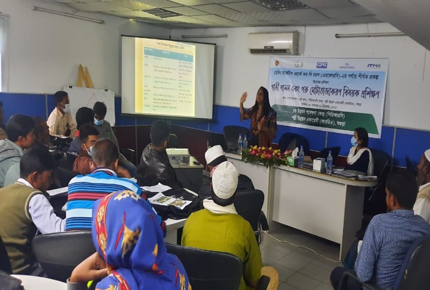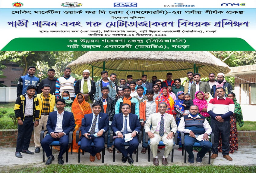প্রকল্পের আওতায় ২৮ নভেম্বর-০২ ডিসেম্বর, ২০২১ খ্রি. (৫ দিন) মেয়াদী গাভী পালন এবং গরু মোটাতাজাকরণ বিষয়ক উদ্যোক্তা উন্নয়ন প্রশিক্ষণ