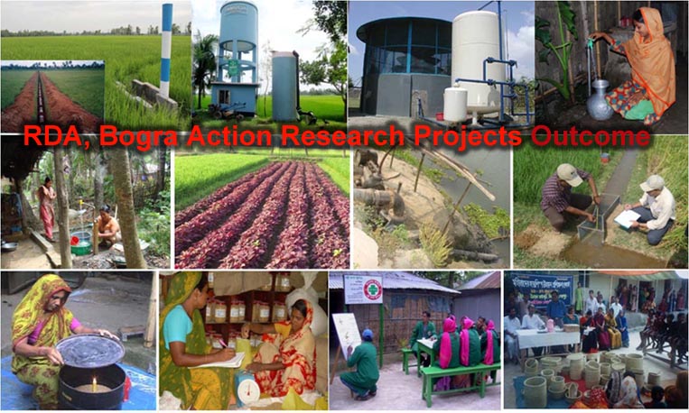 আরডিএ, বগুড়া বিগত প্রায় চার দশক ধরে গ্রামীণ জনগোষ্ঠির আর্থ-সামাজিক ও জীবনযাত্রার মানোন্নয়নের লক্ষ্যে নিরলসভাবে পরীক্ষা-নিরীক্ষার মাধ্যমে বিভিন্ন মডেল উদ্ভাবনের নিমিত্ত প্রায়োগিক গবেষণা প্রকল্প বাস্তবায়ন করে যাচ্ছে। আরডিএ কর্তৃক গ্রামীণ জনগোষ্ঠির আর্থ-সামাজিক ও জীবনযাত্রার মানোন্নয়নে এ পর্যন্ত মোট ৪৪টি প্রায়োগিক গবেষণা প্রকল্প সফলভাবে বাস্তবায়িত হয়েছে। সরকারের বার্ষিক কর্মসম্পাদন চুক্তি (এপিএ)’র লক্ষ্যমাত্রার সাথে সংগতি রেখে প্রায়োগিক গবেষণাসমূহ পরিচালনা করা হচ্ছে। একাডেমী প্রতিষ্ঠা লগ্ন থেকে জুলাই ২০২১ পর্যন্ত মোট ৪৪টি প্রায়োগিক গবেষণা প্রকল্প সফলভাবে বাস্তবায়ন সম্পন্ন করতে সক্ষম হয়েছে।
